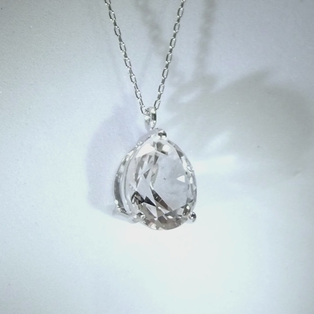 クラシックな美しさと卓越したクラフツマンシップが融合した、宮崎県高千穂産のピュアクリスタルネックレス。湧き水で丁寧に洗浄された天然クリスタルは、日本の熟練職人によるダイヤモンドカット仕上げで、ダイヤモンドを凌ぐ透明感と輝きを放ちます。10×8mmのペアシェイプ型クリスタルは、しずくのように優雅なラインを描き、胸元に女性らしい柔らかさと上品な存在感を添えます。上質なプラチナチェーンと石座が、その光をより一層引き立てる、タイムレスで特別な一本。